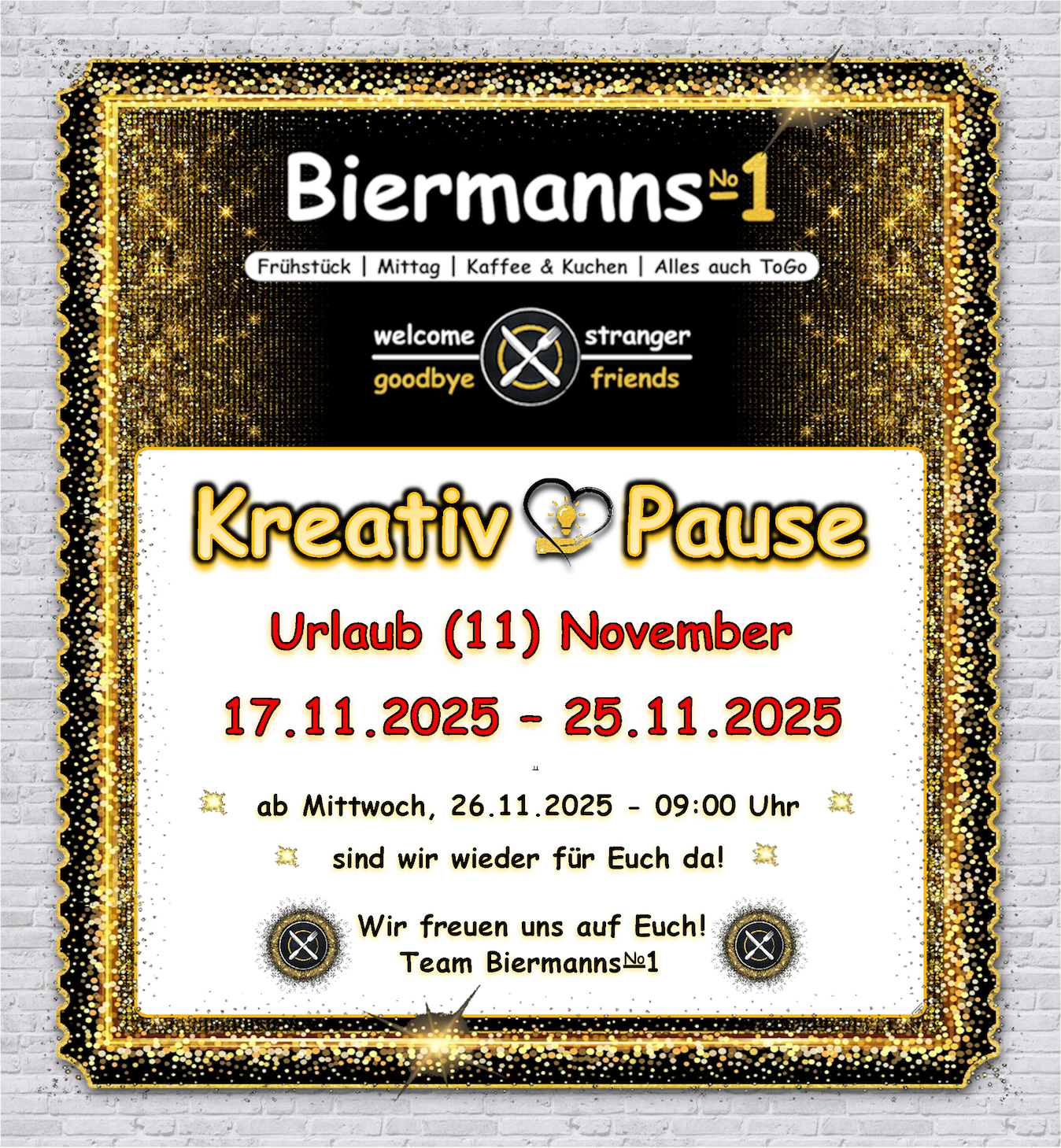 Hier informieren wir Euch rechtzeitig über unsere besonderen Events / Aktionen / Veranstaltungenin chronologischer Reihenfolge.– team Biermanns-No.1-